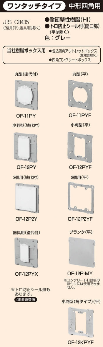 OF-12PYX|プラ塗代カバーワンタッチ 中四角器具用 塗代付