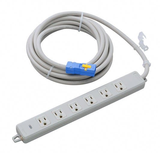 MR7732TJ5|6個ロ抜止接地コンセント 15A 125V 15A安全ブレーカ付 ラック横取付(段付金具)タイプ ランプ付 VCTF5m 接地プラグ付