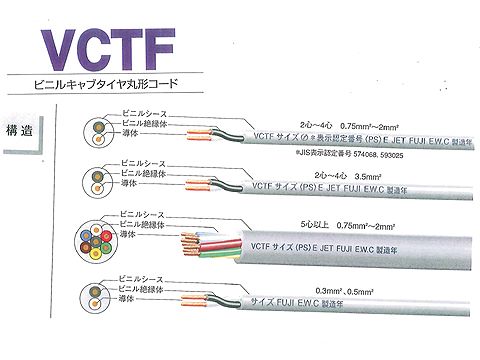 VCTF1.255|300V ビニルキャブタイヤ丸形コード 1.25×5芯 300V
