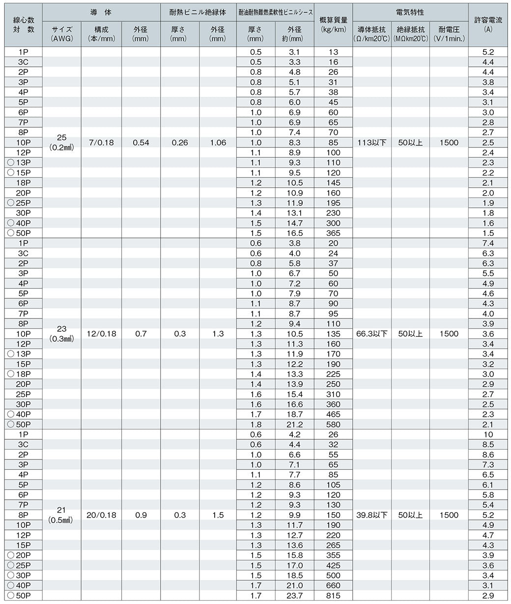 ●UL cUL AWM 150V 80℃共用(カテゴリー:AVLV2, AVLV8)